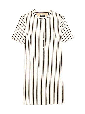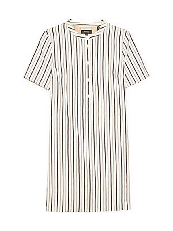 A short-sleeve striped dress with front buttons. Roundneck Short sleeves Button placket Cotton/linen/elastane Dry clean Imported SIZE & FIT About 34 from shoulder to hem Model shown is 510 (177cm) wearing US size Small ABOUT THE BRAND In 2000, founders Andrew Rosen and Elie Tahari launched Theory with a focus on innovative, comfortable stretch pants for women. Since then, the New York-based. Womens - W Contemporary > Saks Off 5th > Barneys Warehouse. Theory. Color: Ivory Multi. Size: M. Crewneck Short sleeves Pullover style Partial front button placket Striped print Please note that this dress will be delivered with a black b-tag attached, with instructions for removal included. If the b-tag is removed, the dress cannot be returned. Imported MATERIAL & CARE 60% cotton/ 38% linen/ 2% elastane Dry clean