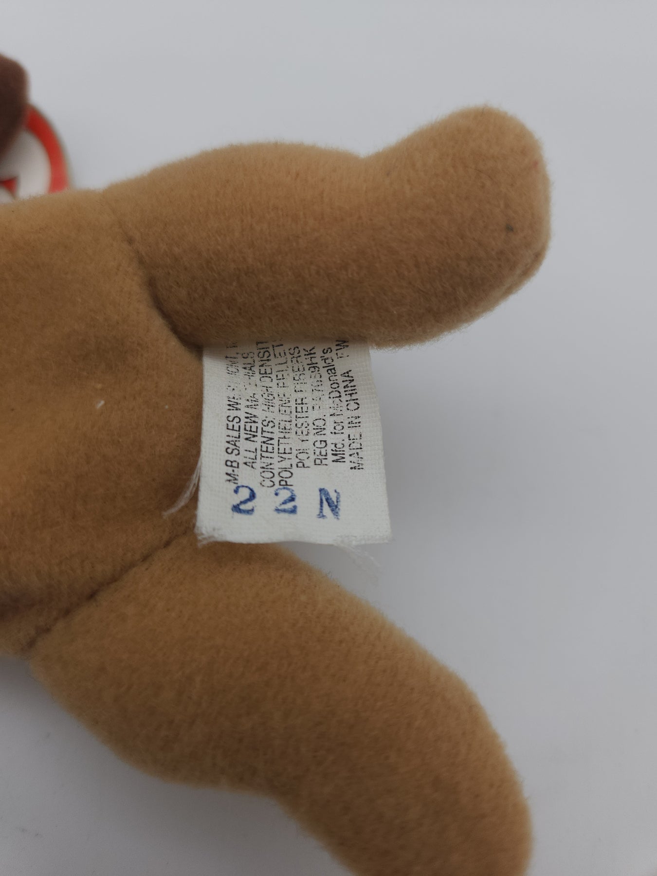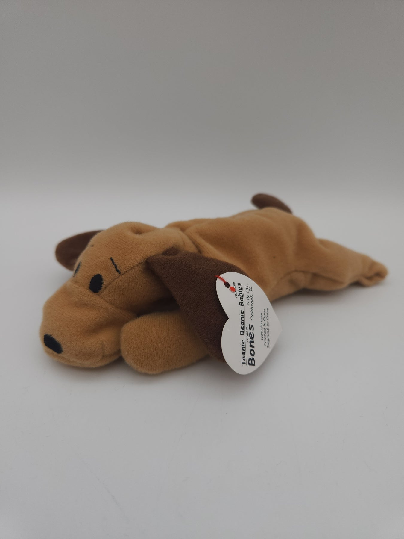 Ty Teenie Beanie Baby Bones The Dog 1993 Collectible RARE STAMP. 1993 MCDONALDS PROMO RARE RETIRED VINTAGE 1ST GENERATION TAGS! BOTH ARE SINGLE TAGS, NOT BOOK LIKE FOR THE SWING TAG AND NOT LOOPED ON THE TUSH TAG AUTHENTIC 1993 TEENIE BEANIE BABY- THIS IS NOT A REPLICA!!!!! ERRORS; - OAKBROOK SHOULD BE OAK BROOK - TUSH TAG HAS C AND R MARK - RARE MISTAKE MANUFACTURER STAMP ON TUSH TAG - TY INC., SHOULD NOT HAVE A COMMA AFTER THE PERIOD - AFTER MADE IN CHINA THE MANUFACTURER ACCIDENTALLY PUT SO THIS IS A RARE, MINT CONDITION, VINTAGE TEENIE BEANIE BABY PROMO FROM 93 WITH ERRORS, THERE IS NO RETURNS FOR COLLECTABLES - ORIGINAL P E PELLETS