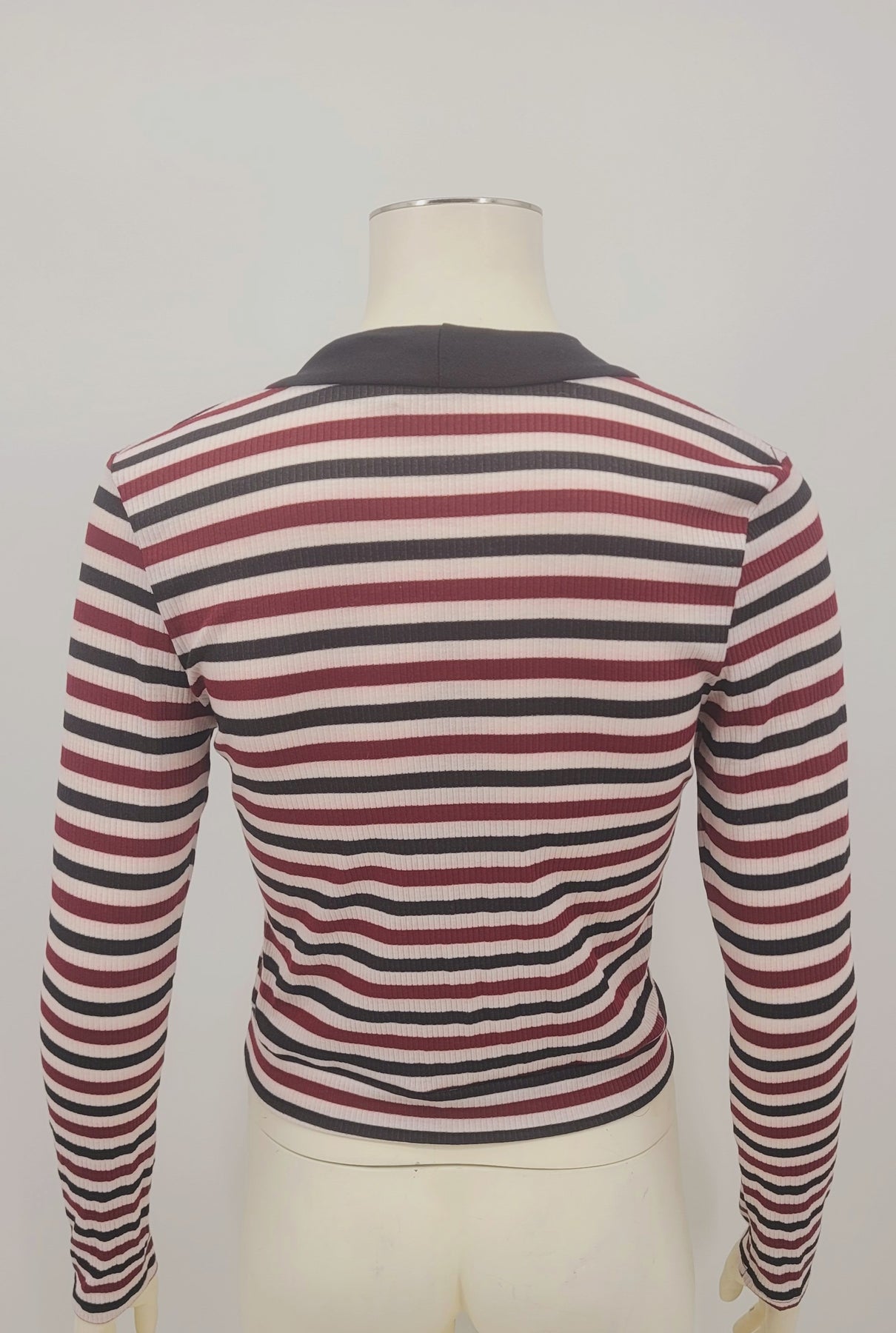 Super stripes up top from Ultra Flirt styled with a cool curve-hugging fit. 3/4-sleeves Polyester/rayon/spandex Machine washable Imported