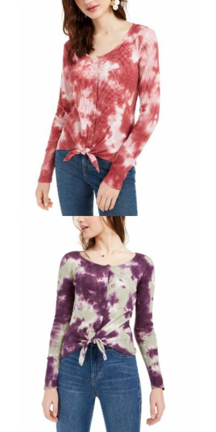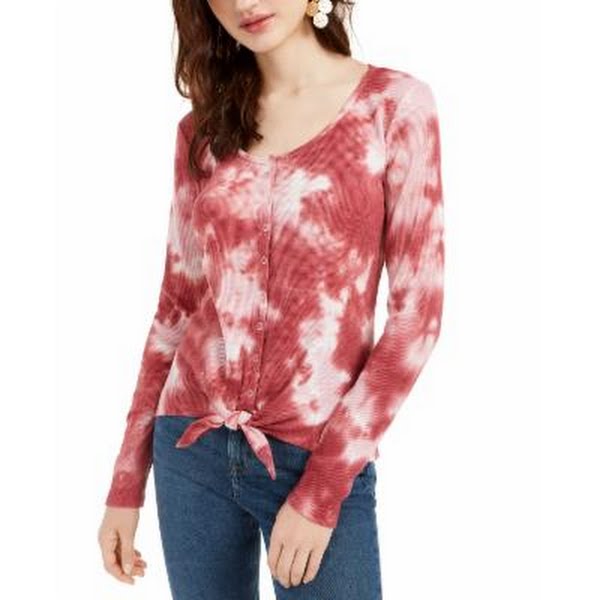Ultra Flirt Juniors Tie-Dye Thermal Top Juniors Juniors Clothing - TopsBox K22 (S/ Purple Tie Dye-1)