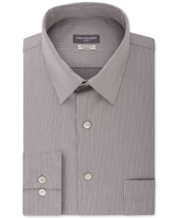 Designed with a roomy flex collar that expands up to half an inch for all-day comfort, this wrinkle-resistant button-down from Van Heusen combines classic textured patterning and earth-tone color to give you a versatile everyday look. Classic fit Flexible point collar Barrel cuffs Pocket at left chest All-over stripe detail Wrinkle-resistant fabric Cotton/polyester/elastane Machine washable Imported