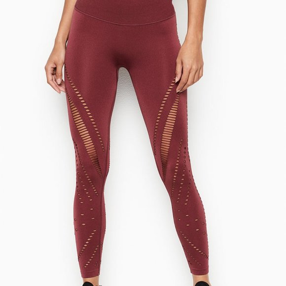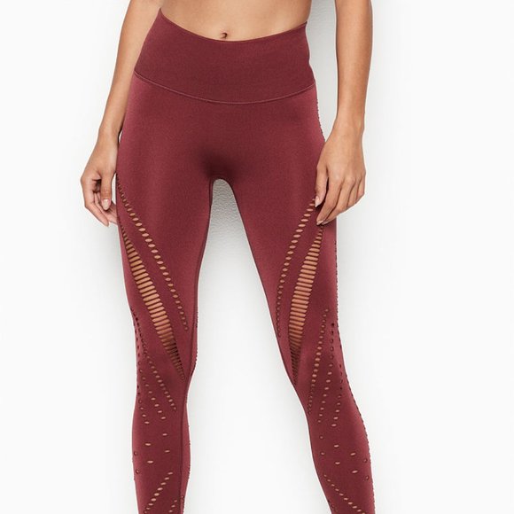 VICTORIAS SECRET Seamless High Rise 7/8 Tight XS Very Small Approx. 11-12” across waist flat 24 1/2” Inseam Color: Red Currant NWT Has Tags and Victoria’s Secret Packaging Pics & Description from VS Site Soft and seamless, with 4-way stretch thats made to move and slashes for added edge. High rise Seamless performance fabric with 4-way stretch Body-wick 7/8 length; 24 1/2 inseam Machine wash Imported nylon/spandex/cotton