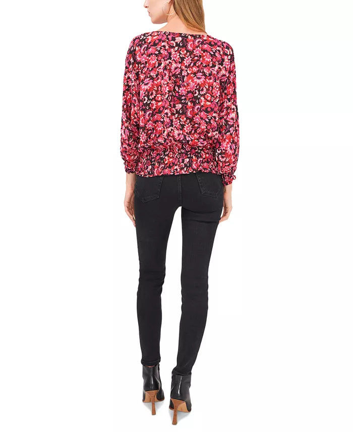 Vince Camuto Floral-Print Smocked Peasant Top Women Womens Clothing - Tops. Smocked details add whimsy and charm to Vince Camutos printed scoop-neck blouse. Scoop neckline Smocked hem 3/4-length blouson sleeves; smocked cuffs Polyester Machine washable Imported