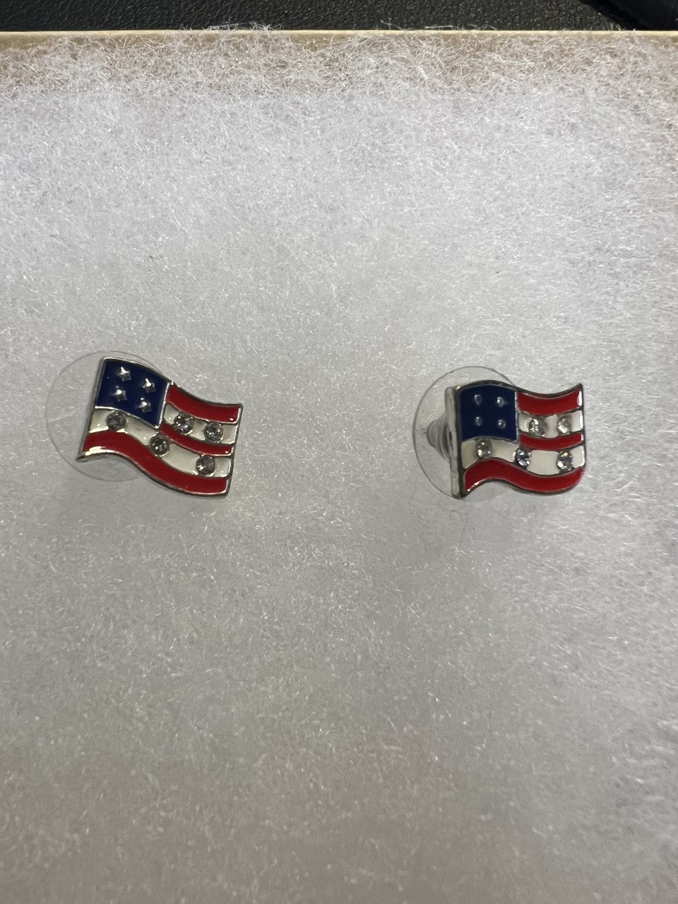Vintage Enamel American Flag Earrings Jewelry Pierced Silver Tone 4th of July