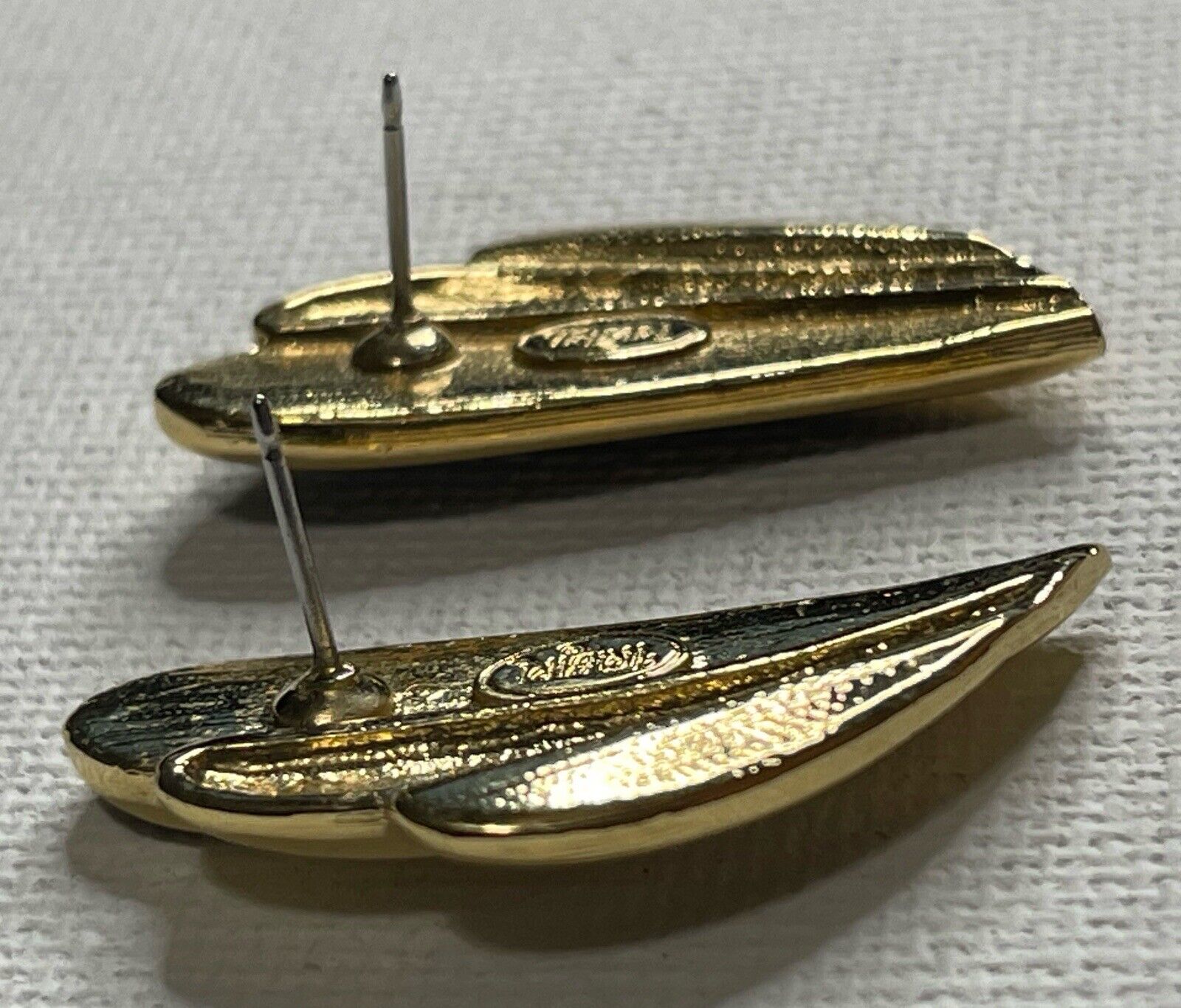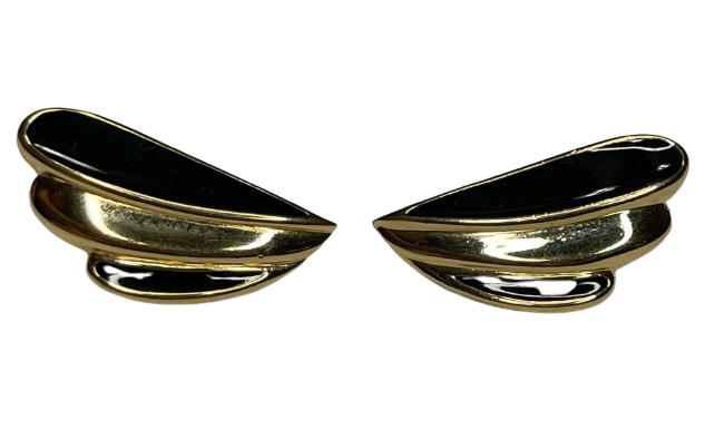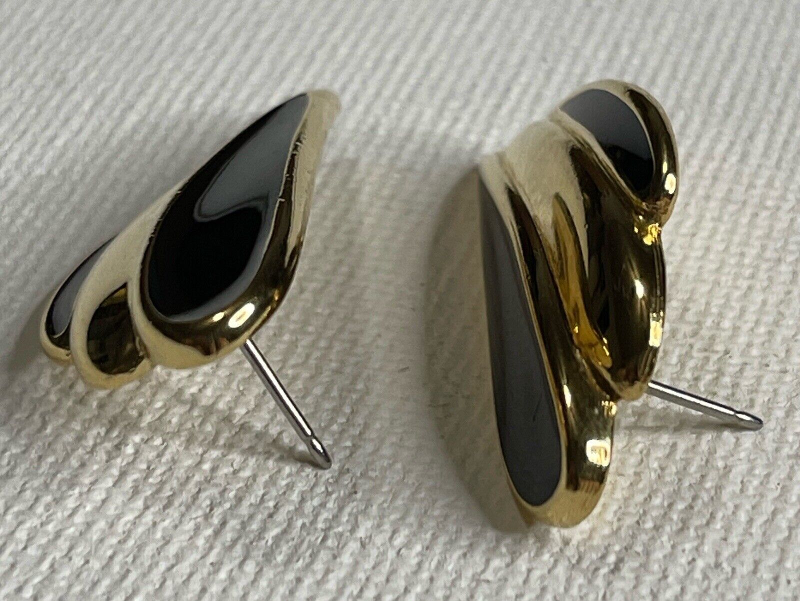 Vintage Gold Tone Trifari Black Enamel Accent Pierced Earrings Shiny Jewelry . Pre-owned. As Is. I will be including a set of backs with this order as well. All items are sold as is. I do not alter or items or vintage items because I feel it is important to maintain the authentic condition of each item. Please refer to the photos to help judge condition.Listed: Martha Russel