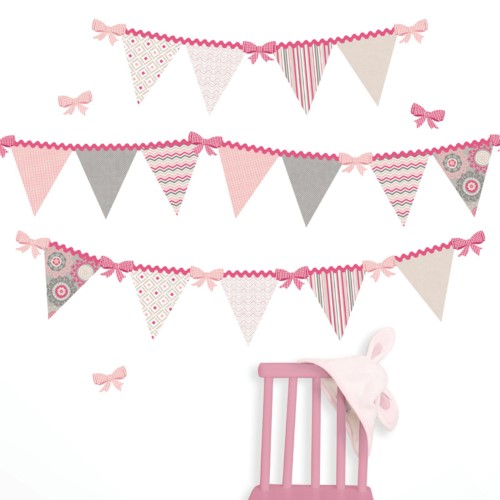 Item Notes: Create a celebration in your babys room with precious pennant flag garland decals. It features pretty pink gingham ribbons, and delicate designs that brighten up your babys room. WallPops!® are replaceable, removable, and...