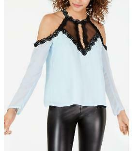 A study in contrasts, Xoxos long-sleeve cold-shoulder top is fashioned with contrast illusion styling and lavish lace trim.