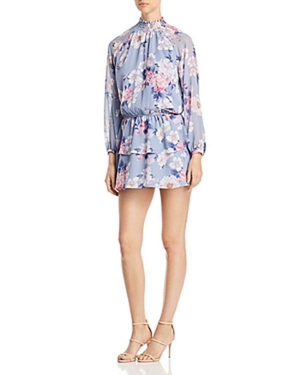 Yumi Kim Class Act Floral-Print Smock-Neck Dress-Women. Fits true to size, order your normal size Approx. 34.75 from back of neck to hem, based on a size small Model measurements: 510 height, 33.5 bust, 23.5 waist, 34.5 hips, wearing a size extra small Smocked mock neck with ruffle trim Sheer bracelet raglan sleeves with button cuffs, blouson bodice Elasticized waistband, tiered skirt, back button keyhole Allover floral print, partial lining MATERIAL & CARE Polyester Dry clean